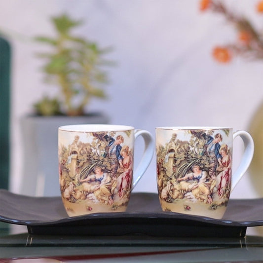 Ceramic Vintage Victorian Print - 6 Pc Mug Set Serves as Tea Cups, Coffee Cups, Tea Mugs, Coffee Mugs