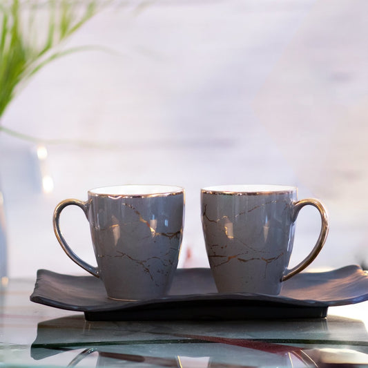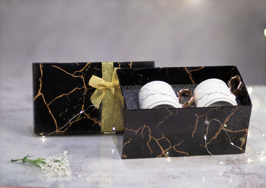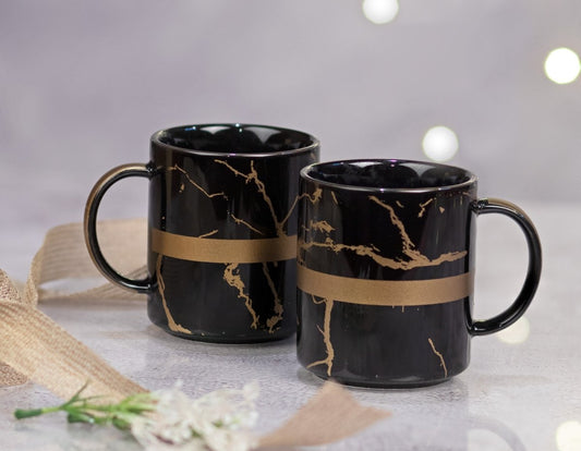 Porcelain Black & Gold Mug - Set of 2 Porcelain Mugs in Marble Finish