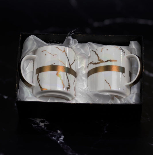 Kezevel Marble Finish Mugs - Set of 2 White and Stripes of Gold Mugs