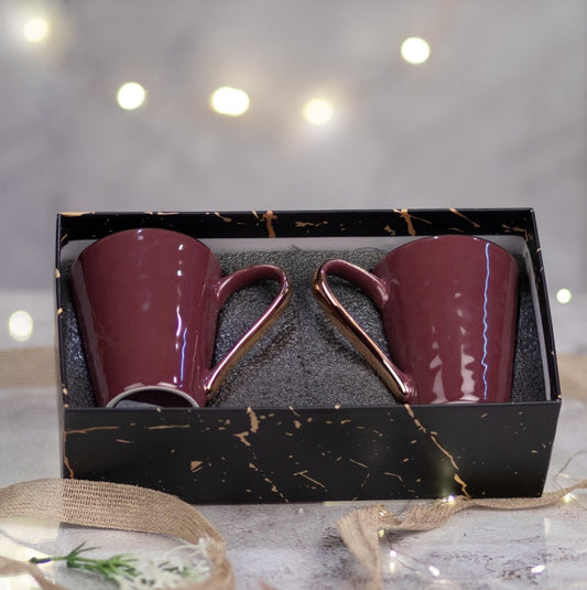 Premium Porcelain Large Mugs in Rosewood and Gold Finish- Set of 2