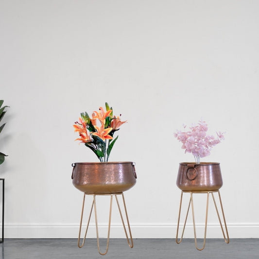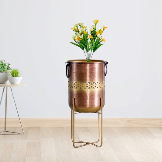 Kezevel Metal Planter with Stand - Handcrafted Antique Copper and Gold Plant Pot Holder, Indoor Planter Pot for Home Decor Size Big / Small