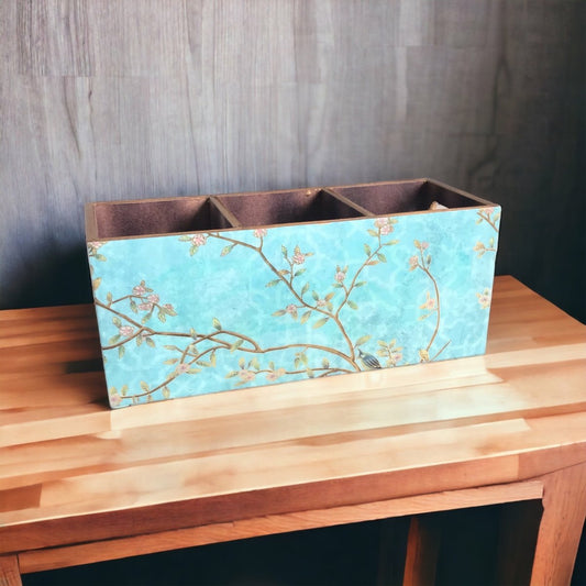 Kezevel Wooden Cutlery Holder - Aqua Blue Cutlery Organizer for Dinning Table, Kitchen Countertop for Forks, Knives & Spoons, Size 25.5X10.3X10.3 CM