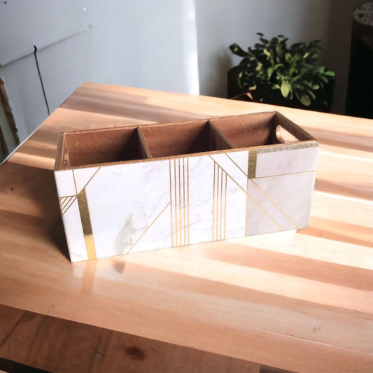 Kezevel Wooden Cutlery Holder - Beige White Cutlery Organizer for Dinning Table, Kitchen Countertop for Forks, Knives & Spoons, Size 25.5X10.3X10.3CM