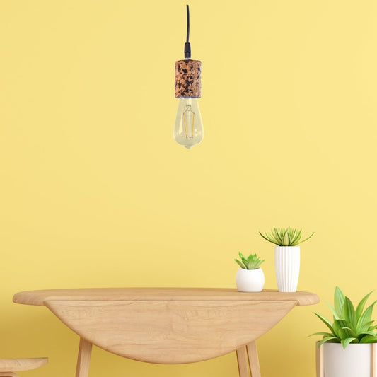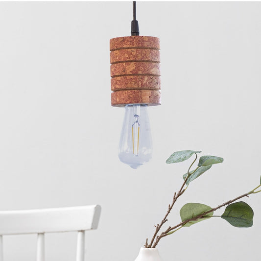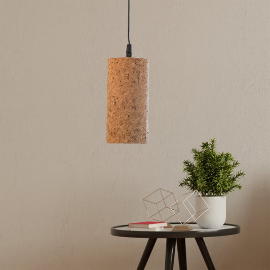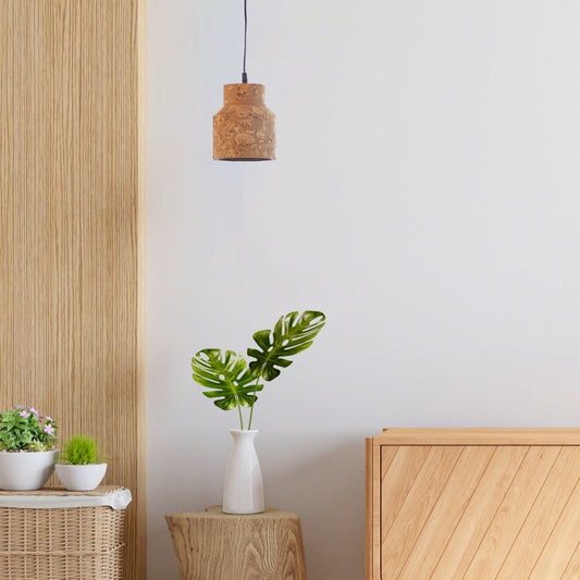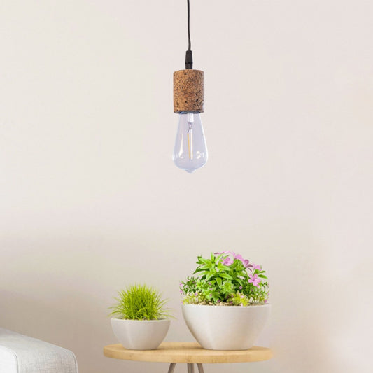 Kezevel Cork Decorative Hanging Lamp - Natural Cork Brown Cylindrical Light for Living Room, Balcony, Foyer, Bedroom and Kitchen, Size 5.5X5.5X7 CM