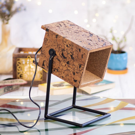 Kezevel Cork Decorative Table Lamp - Natural Cork Brown Rectangle Shade Bedside Table Lamp, Desk Lamp, Side Lamp, Reading Lamp, Size 17.5X17.5X35.5 CM