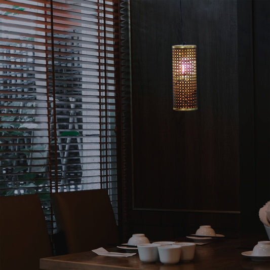 Kezevel Cork Decorative Hanging Light - Natural Cork Brown Cylindrical Pendant Light for Living Room, Balcony, Foyer and Bedroom, Size 10X10X20 CM