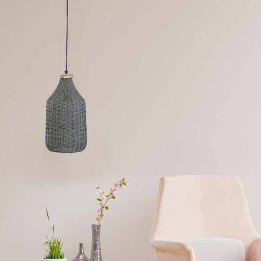 Kezevel Seagrass Weaved Hanging Light - Artistically Handcrafted Pendant Light for Living Room, Bedroom, Balcony and Foyer, Size 30.48X30.48X45.72 CM