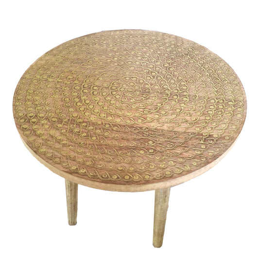 Kezevel Wooden Decorative Accent Table - Round Brown Yellow Handcrafted Vintage End Table, Bedside Table, Side Stand, Stool, Size 45.72X45.72X48.26 CM