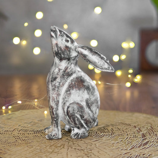 Kezevel Metal Big Rabbit Statue - Antique White Black Copper Handcrafted Rabbit Showpieces for Home Decor, Animal Figurine for Table, Size 13X9X21.7 CM
