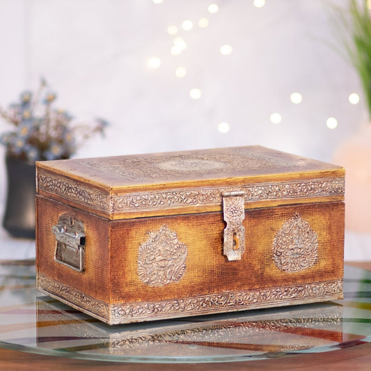 Kezevel Metal Decorative Storage Box - Rectangle Antique Golden Handcrafted Trinket Box, Jewelry Box, Treasure Box Home Decor, Size 31.7X21.5X16.5 CM