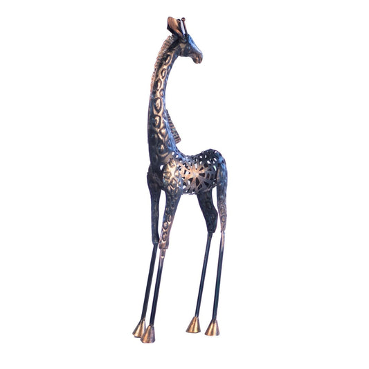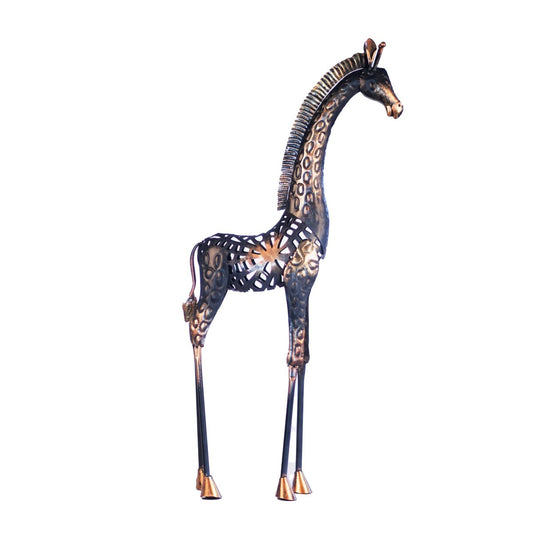Kezevel Metal Giraffe Table Decor - Handcrafted Giraffe Figurine in Antique Black Golden Showpieces for Home Decor, Size 29.5X11.4X72.4 CM