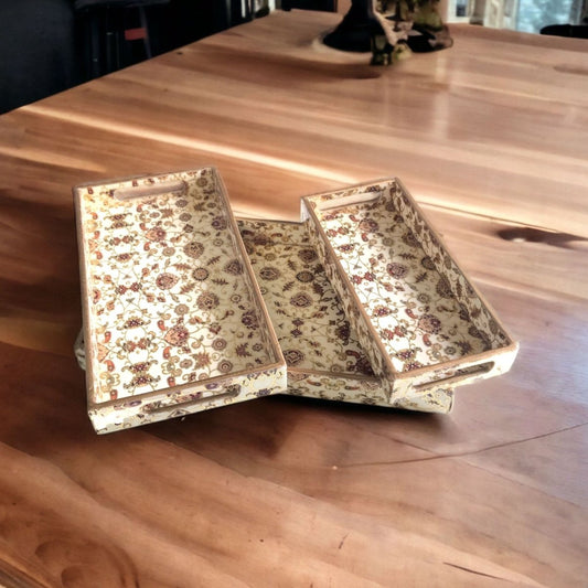 Kezevel Wooden Decorative Tray - Stylish Designer Tray for Table Decor , Tray for Home Decor , Dinning Table Tray , Serving Tray , Wedding Tray , Small, Medium and Large