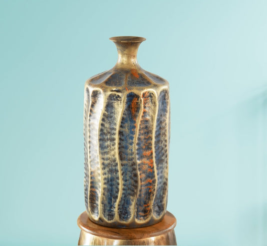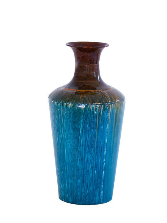 Kezevel Metal Decorative Flower Vase - Artistic Blue and Brown Metal Flower Vases for Home Decor & Living room - Size 19.7X19.7X40.6 CM