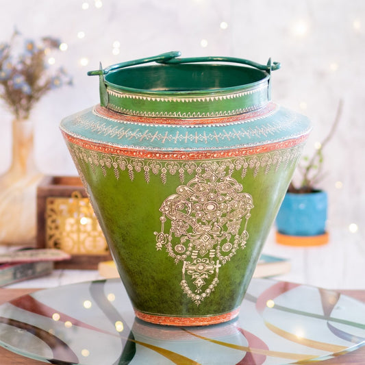 Kezevel Metal Decorative Floor Vase Pot - Antique Green and Blue Handcrafted Vases for Living Room Corner, Metal Pot for Home Decor, Size 40X40X39 CM