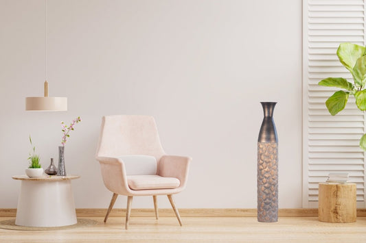 Kezevel Metal Antique Floor Vase - Artistically Handcrafted Multicolour Metal Long Flower Vase for Room Decor and Home Decor - Size 24.1X24.1X52 CM