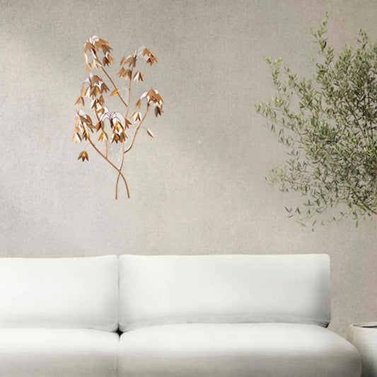 Kezevel Metal Tree Wall Decor - Artistic Metal Wall Art in Shiny Golden Finish with Hook for Wall Hangings for Home Decor - Size 40.6X10.2X73 CM