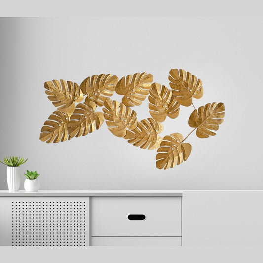Kezevel Metal Wall Art Decor - Handcrafted Rectangular Golden Monstera Leaf Wall Hanging Decor, Metal Wall Decor, Wall Sculpture, Size 123X6X71 CM