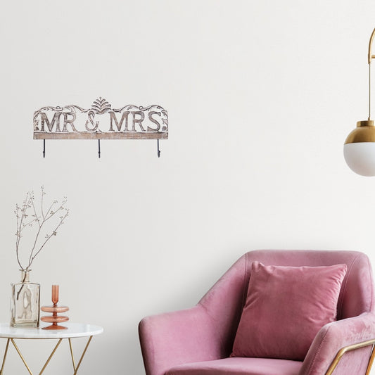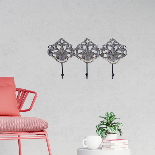 Kezevel Wooden Decorative Wall Hook - Brown, Grey, Ivory Antique Handcrafted Wall Hangers Decorative Hooks for Wall, Foyer Size 36.5X5.5X18.5 CM