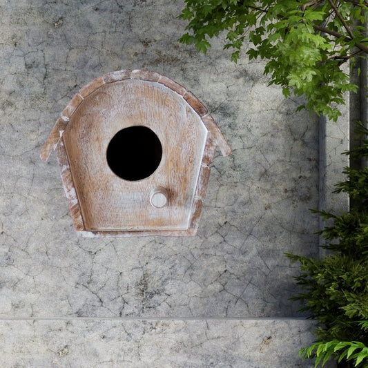 Kezevel Wooden Hanging Bird House - Washed Brown White Handcrafted Bird Feeder, Birdhouse for Balcony, Decorative Bird Nest Box, Size 20.5X15X18 CM
