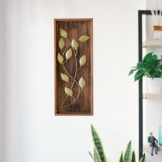 Kezevel Metal Multiple Leaf Wall Decor - Handcrafted Golden Metal Wall Art, Wall Showpiece for Home Decor, Living Room Decor, Size 20.32X2.54X50.8 CM
