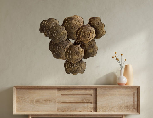 Kezevel Metal Wall Art Decor - Handcrafted Rectangular Floral Rustic Brown Wall Hanging, Metal Wall Decor, Wall Sculpture, Art for Wall, Size 74X6X66 CM
