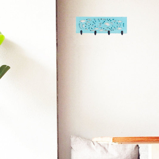Kezevel Wooden Decorative Wall Hook - Artistic Decorative Wall Hangers in Turquoise Blue Finish , Decor Hooks for Wall , Size 45.3X5.5X16.5 CM
