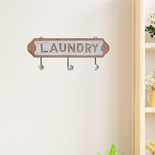 Kezevel Wooden Decorative Wall Hook - Brown, White Handcrafted Wall Hangers Decorative Hooks for Wall, Laundry Wall Decor Hook, Size 40.5X5.5X16.5 CM
