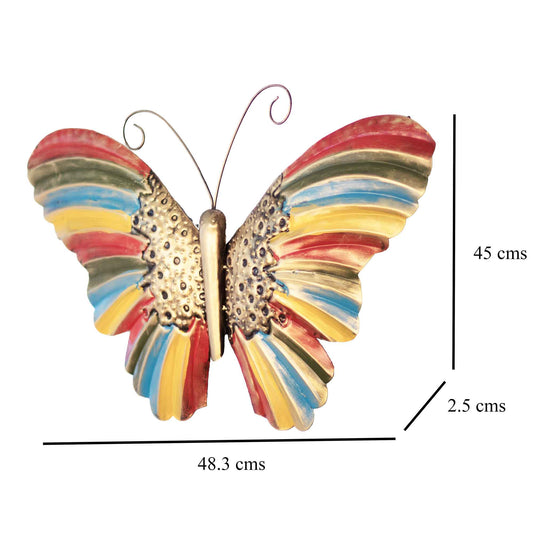 Kezevel Metal Butterfly Wall Decor - Handcrafted Metal Wall Art - Multicolour Metal Wall Hanging with Hook for Home Decor - Size 48.3X2.54X45 CM