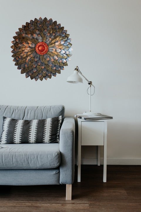 Kezevel Metal Flower Wall Decor - Artistic Metal Wall Art Antique Silver Brown Finish Stylish Daisy Flower for Home Decor - Size 70X7X70CM