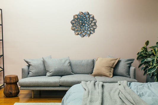 Kezevel Metal Flower Wall Decor - Artistic Metal Wall Art - Turquoise Blue Gold Finish Stylish Dahlia Flower Wall Art for Home Decor - Size 61X5X61CM